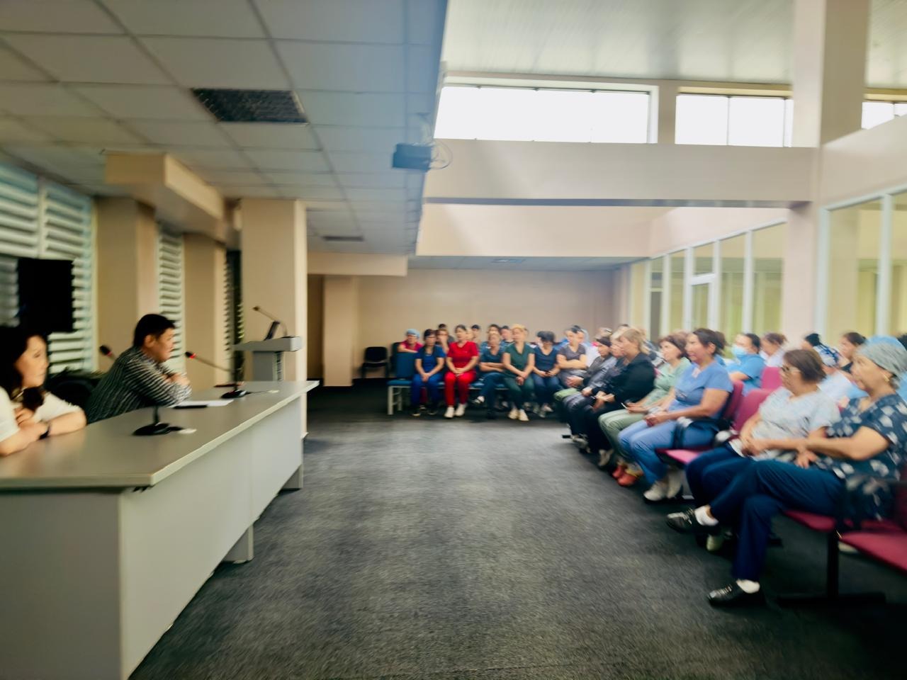 В ходе разъяснительной работы обсуждены ряд проблемных вопросов, касающиеся защиты прав и законных интересов медицинских работников, в частности разъяснены вступившие в законную силу изменения в Уголовный Кодекс Республики Казахстан, в частности ст.380-3 УК РК (таких как угроза применения насилия в отношении медицинских работников, при осуществлении им своих служебных и профессиональных обязанностей).